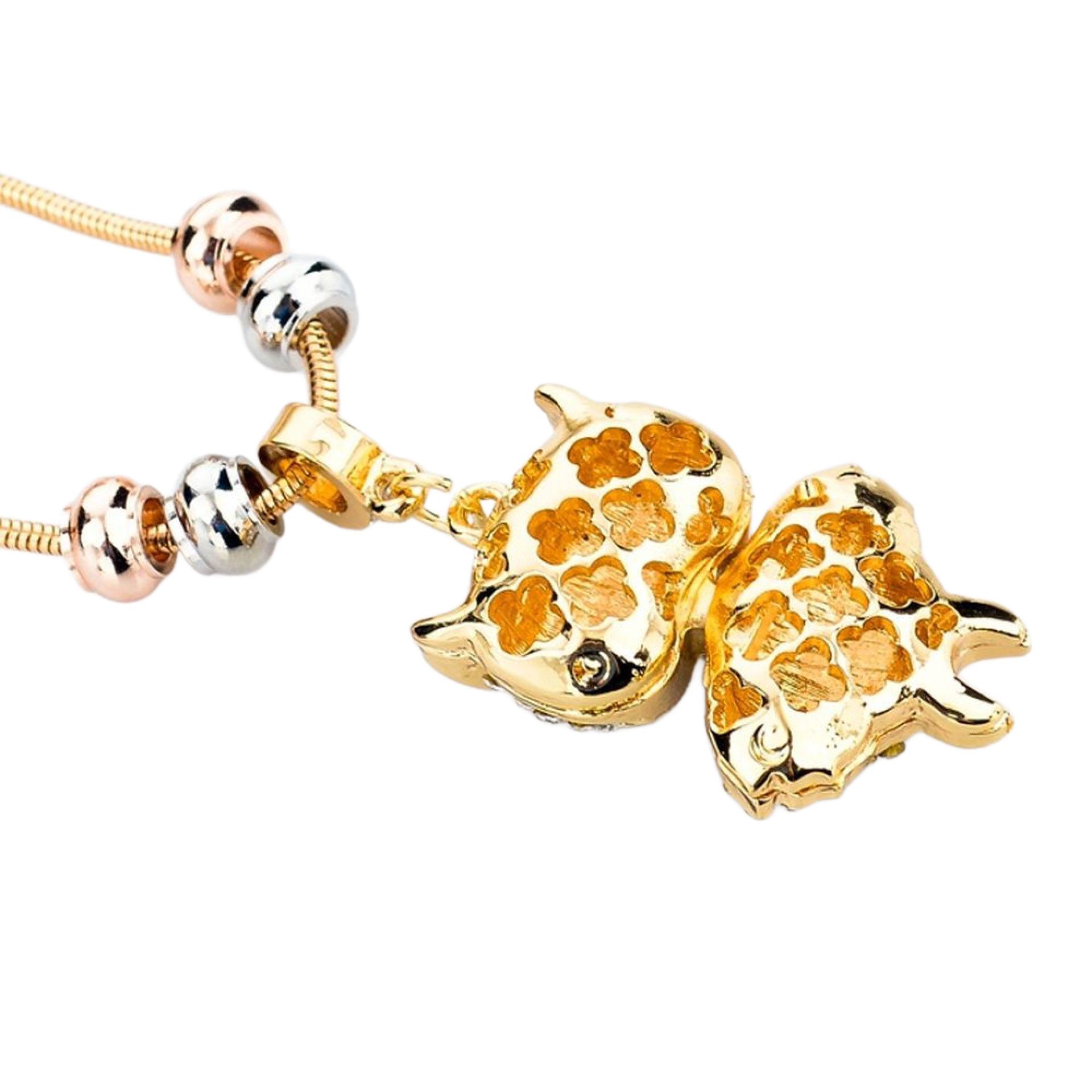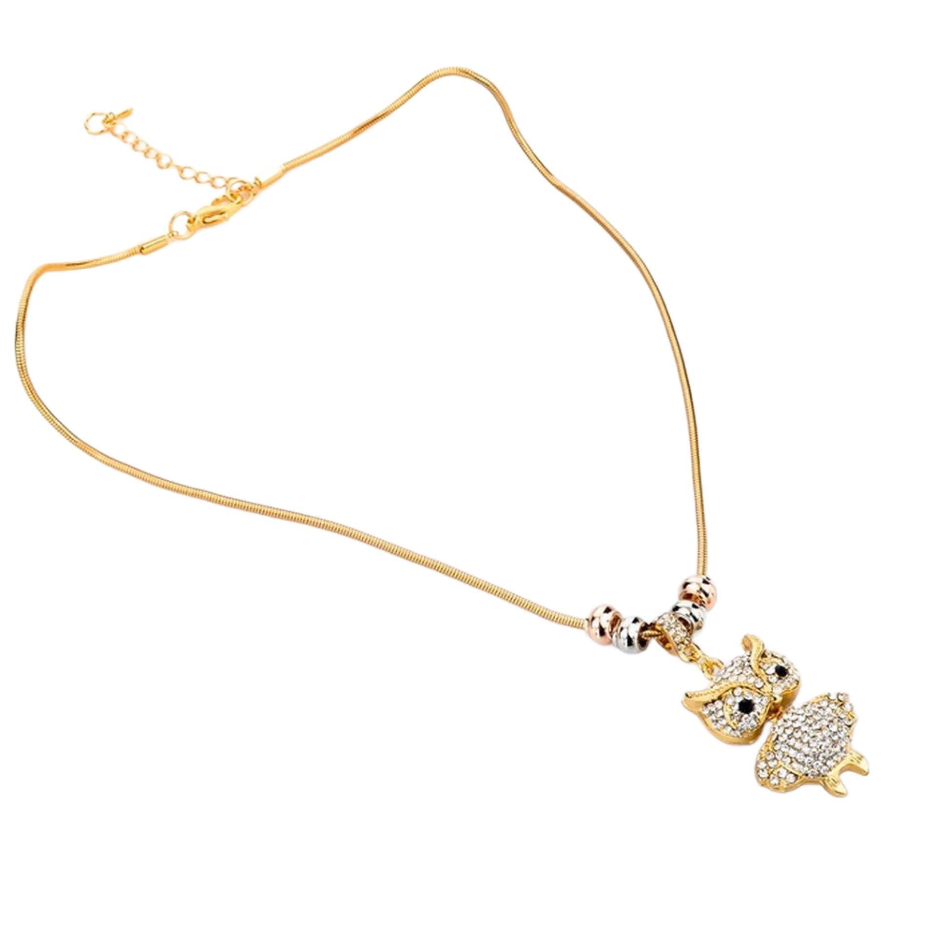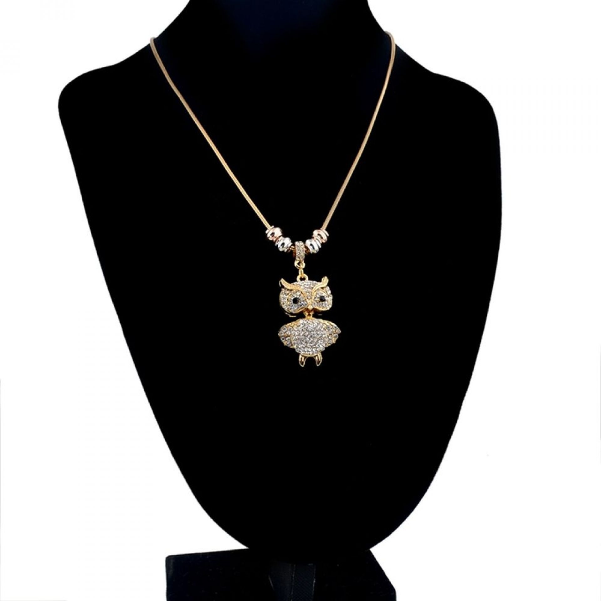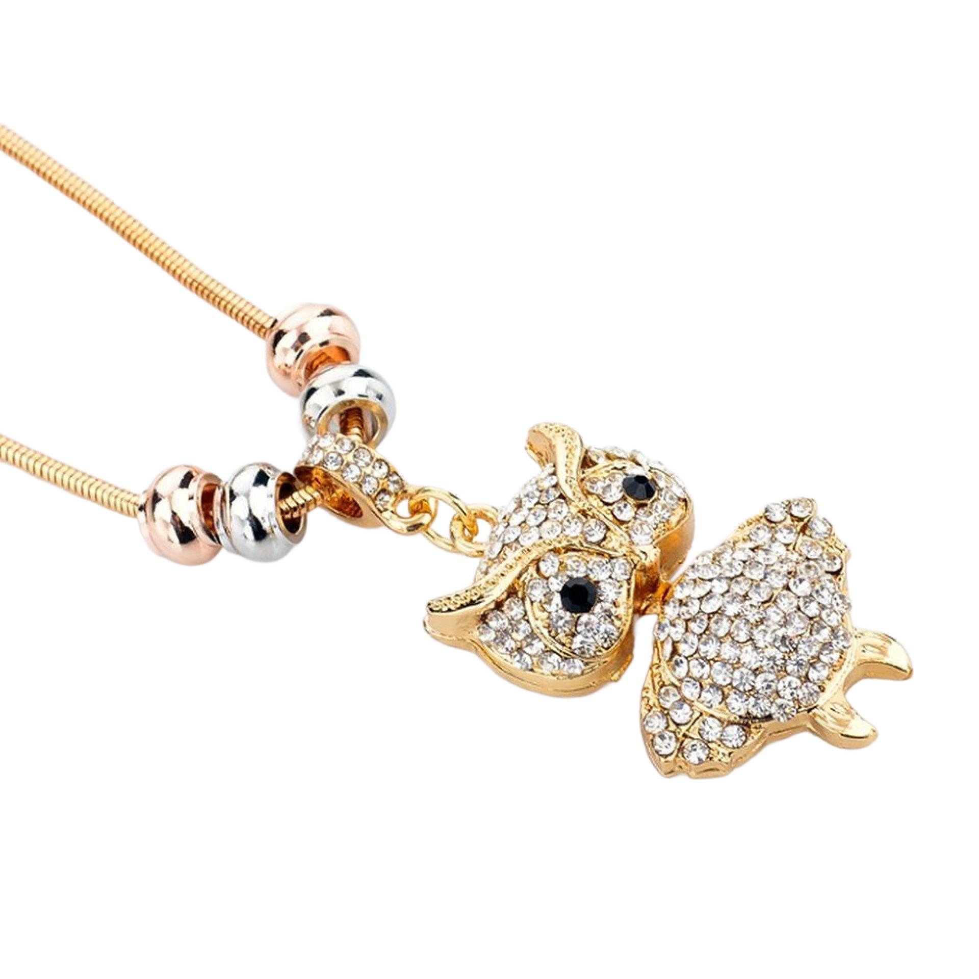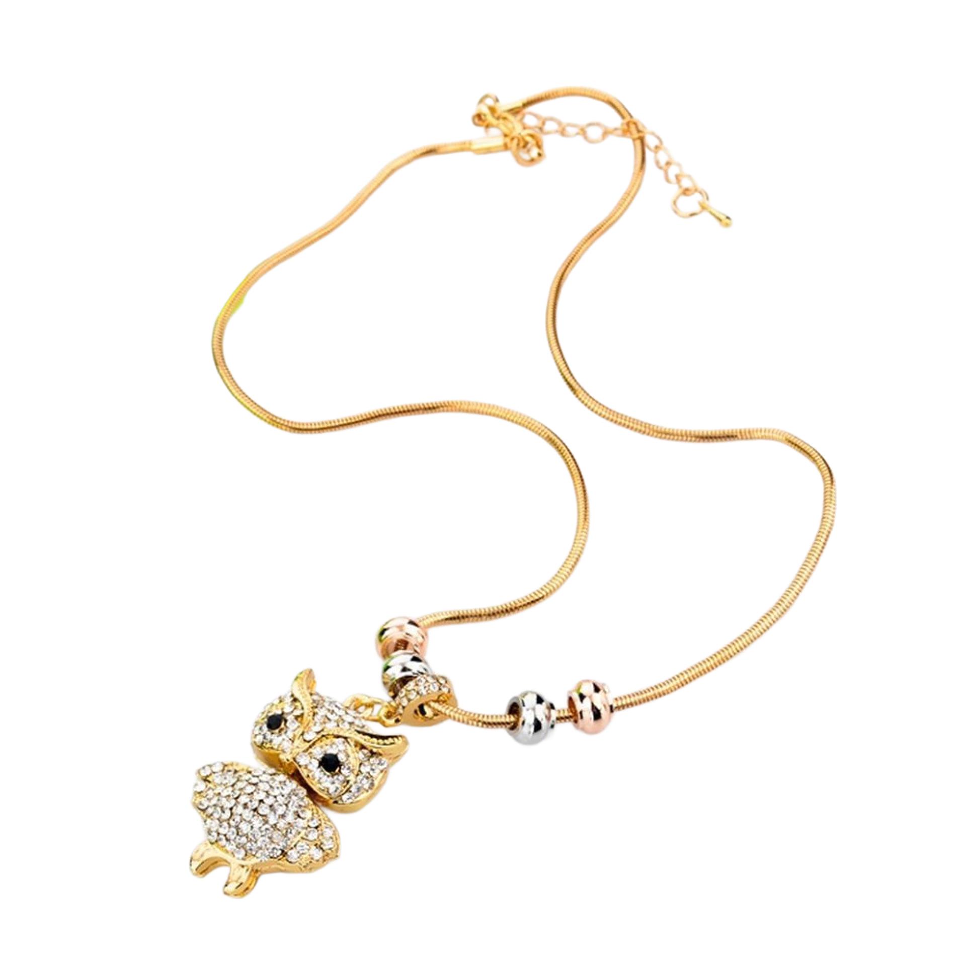 Wunderschöne Modeschmuck Kette mit Eule Anhänger Goldfarbig mit weißen